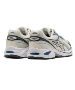 La ASICS GT-2160 Cream Denim Blue se pare d’une empeigne en mesh blanc cassĂ©, accompagnĂ©e de reflets gris et bleu marine. On y retrouve une midsole blanche ainsi qu’un rappel de bleu sur la semelle.