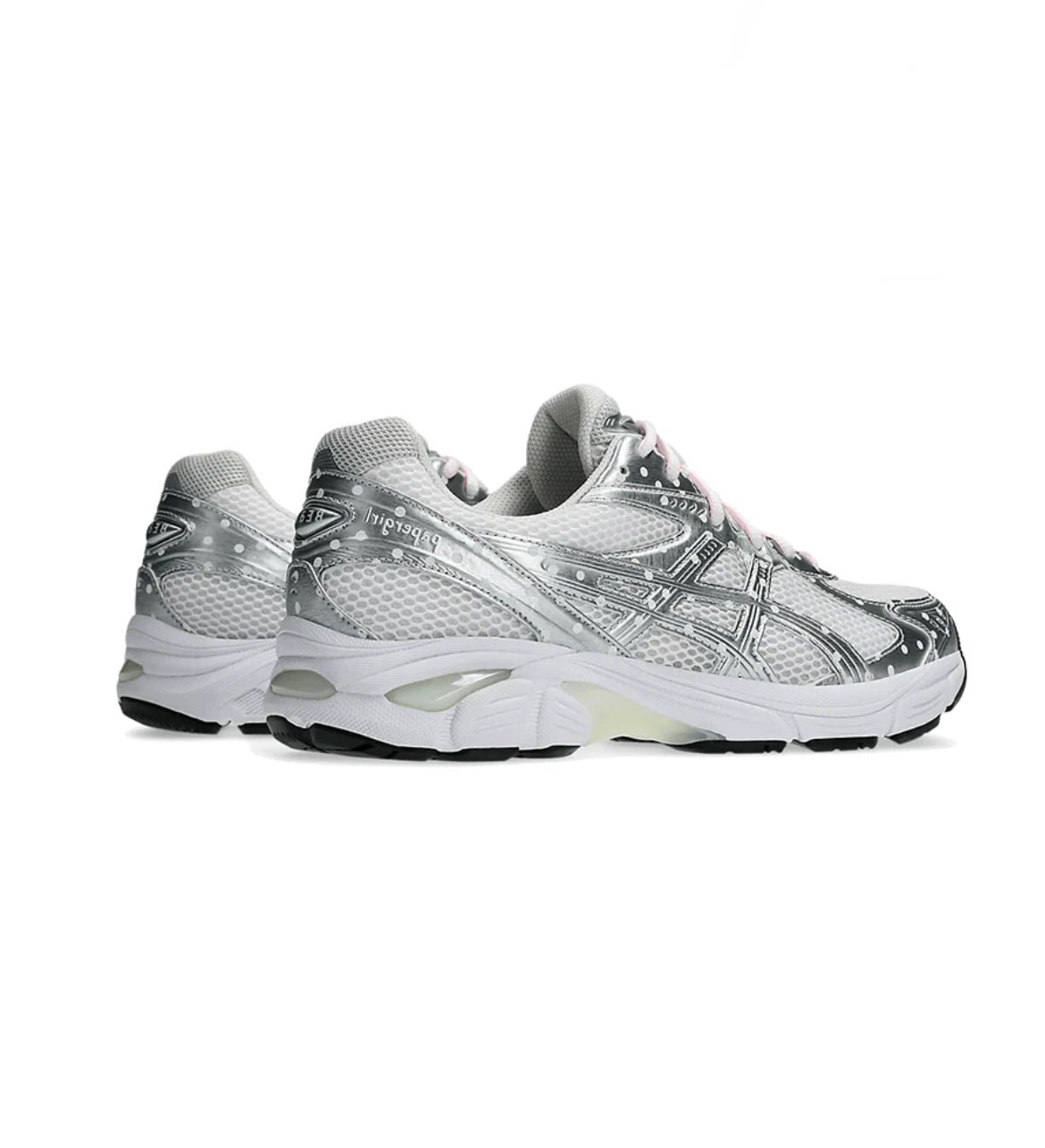 La Asics GT-2160 Paperboy Beams Papergirl introduit une base en mesh blanc, surmontĂ©e d’empiècements en cuir argentĂ© sublimĂ©s par une multitude de petits points blancs. S’ensuivent de magnifiques lacets rose poudrĂ© qui donne la dernière touche de douceur Ă ce modèle. Cette silhouette inĂ©dite marque le lancement pour le grand public de la ligne Papergirl, marque exclusivement destinĂ©e aux femmes.