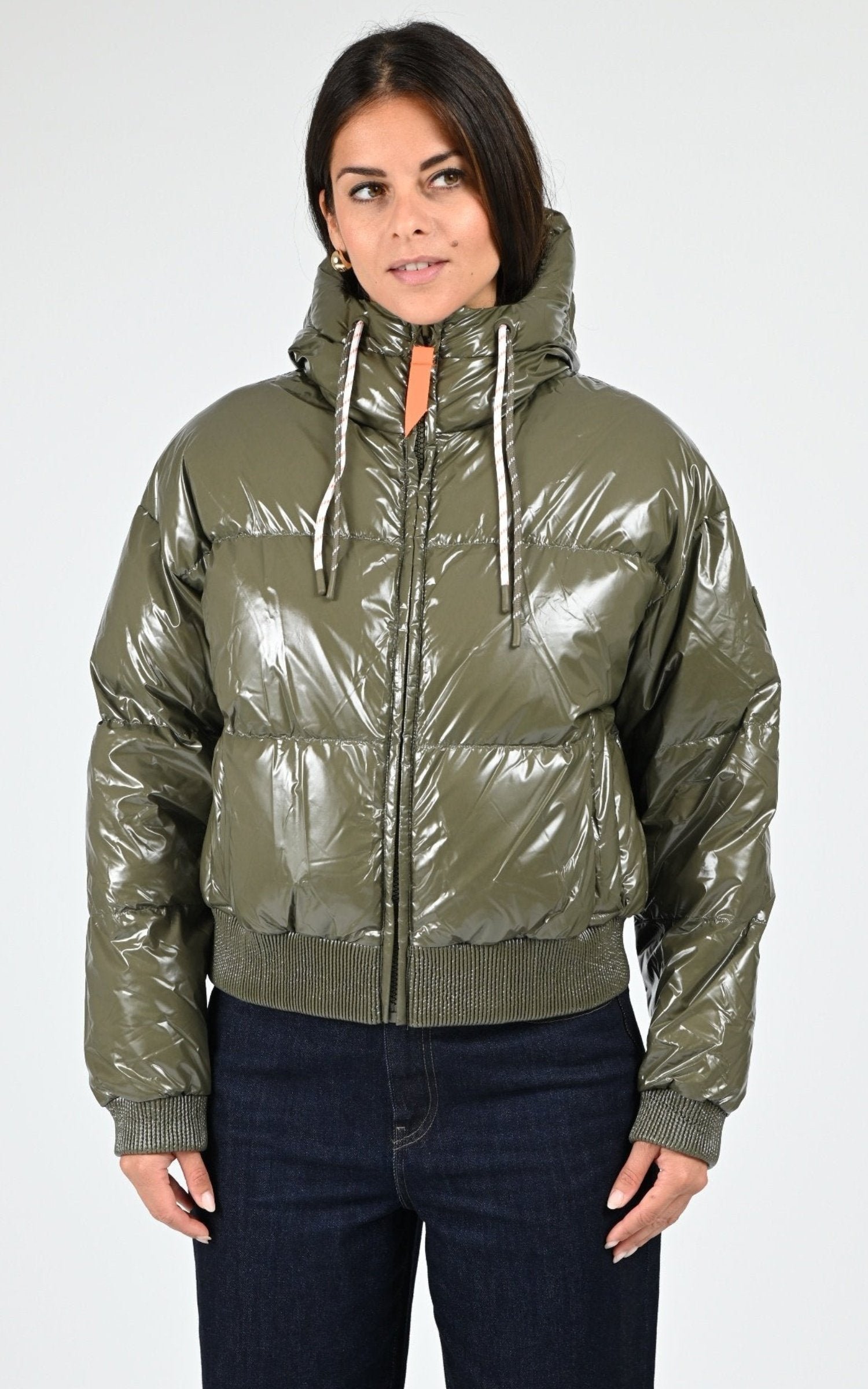 Doudoune courte shiny Nine kaki