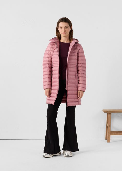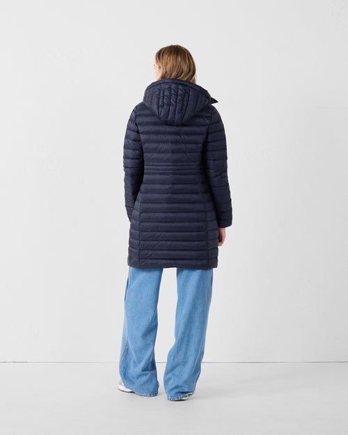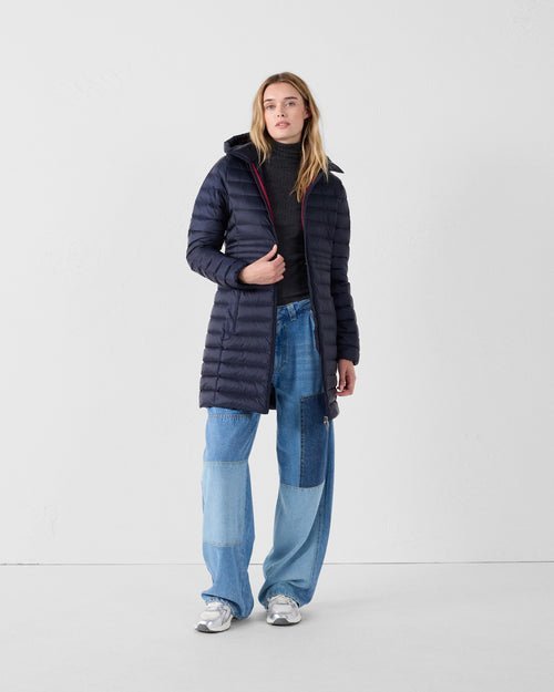 Doudoune longue en polyamide légerGarnissage en duvet 90 % / plumes 10 %Capuche amovibleNouveau col inspiré du trenchCordon de serrage ajustable à la taille pour une silhouette personnaliséePatch logo feutré sur la manche gauche
