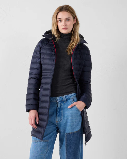 VERO 2.0 est une doudoune longue au style affirmé, pensée pour conjuguer chaleur, légèreté et liberté de mouvement. Sa capuche amovible, sa coupe ajustée et ses détails revisités en font une pièce aussi fonctionnelle qu’élégante, à porter au quotidien comme à la mi-saison.