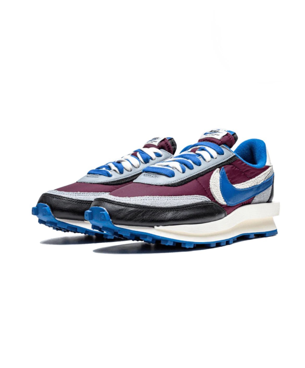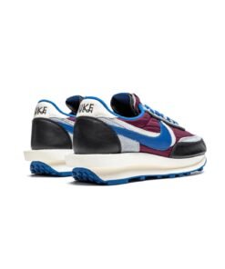 La Nike LD Waffle Sacai Undercover Night Maroon Team Royal adopte une construction se rapprochant de celle des versions et avec une base en nylon, des touches de suède à poils longs et quelques éléments en cuir lisse. La palette de couleurs oscille entre le bordeaux et le bleu, mais présente aussi quelques accents noirs, blancs et gris pour la touche de sobriété.