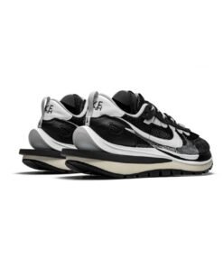 La Nike Sacai Vaporwaffle Black White se compose d’un upper venant mĂ©langer des empiècements de mesh, de suède et de cuir. Un swoosh blanc sur le cĂ´tĂ© vient contraster ce modèle assez sombre. On retrouve Ă©videmment l’aspect dĂ©structurĂ© propre Ă Sacai avec le mĂ©lange de ces deux modèles: deux semelles, deux swoosh, deux languettes… Le branding Sacai est prĂ©sent sur le talon et les languettes.