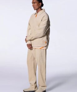 La veste ASTON unisexe est confectionnée en velours côtelé souple. Les manches, légèrement tombantes, sont resserrées au poignet. Deux larges poches cargo à rabat pressionné ornent le milieu devant. L’ouverture milieu devant se fait par un zip muni d’une tirette contrastée, assortie à une étiquette tissée insérée dans la couture côté. Un large patch en silicone ton sur ton est apposé en bas de vêtement.