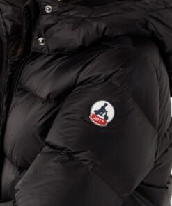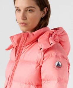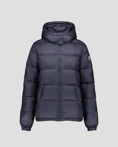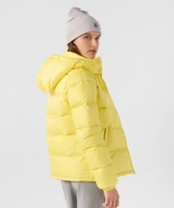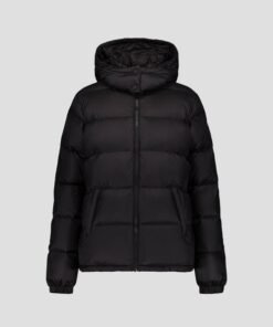 Doudoune courte en tissu iconique polyamide, coupe régulière, coupe ajustée, deux poches latérales, fermeture zippée sur le devant, capuche amovible avec fausse fourrure.